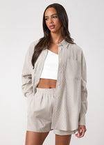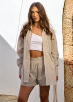 Gym King Signature Poplin Stripe Short - Dune/White Stripe